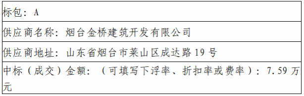 标包A: 烟台金桥建筑开发有限公司(99、98、93) 烟台市黄海建筑工程有限公司(89.9、97.9、90.4) 烟台永盛建筑开发有限公司(78.46、86.46、87.46)