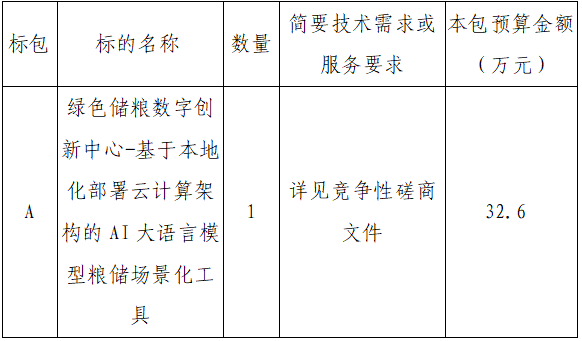 绿色储粮数字创新中心-基于本地化部署云计算架构的AI大语言模型粮储场景化工具 招标项目的潜在供应商应在 山东云尚建设项目管理有限公司(烟台市高新区科技大道69号创业大厦西塔裙楼410)获取采购文件,并于2025-12-08 09:00:00(北京时间)前提交响应文件。
