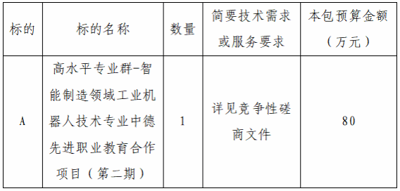 项目名称:高水平专业群-智能制造领域工业机器人技术专业中德先进职业教育合作项目(第二期)