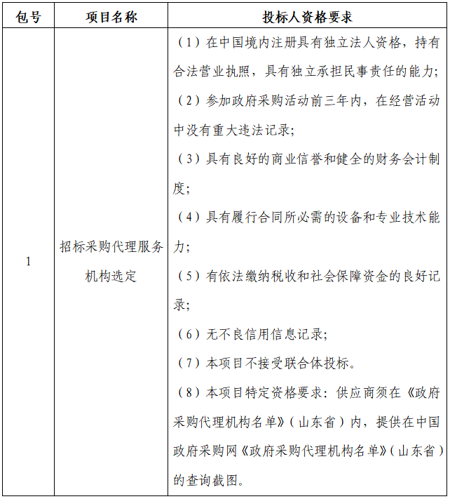 采购内容:招标采购代理服务机构选定;本项目划分一个包;