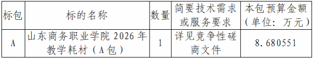 项目名称:山东商务职业学院2026年教学耗材(A包)