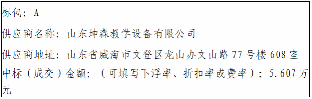 标包:A 山东坤森教学设备有限公司(100、96、98) 山东耀翔信息科技有限公司(80.98、78.98、78.98) 威海金元素教育装备有限公司(80.97、78.97、77.97)