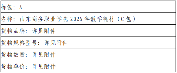 二、项目名称:山东商务职业学院2026年教学耗材(C包)