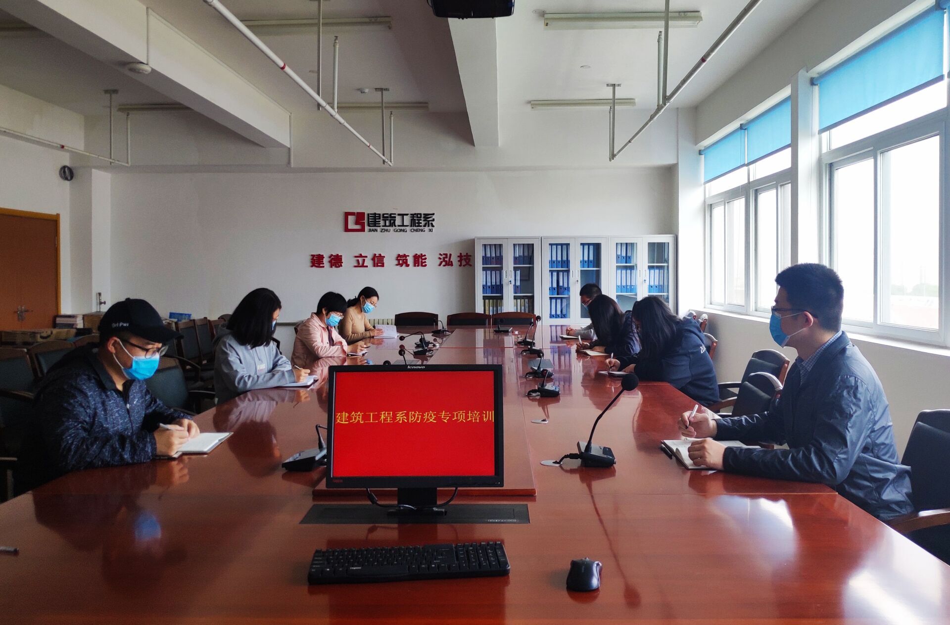 “疫”不容辞,全力以“复”勇担当。建筑系为打赢防疫阻击战,确保线下复课安全有序进行,全力做实做细复学各项准备工作:建筑系师生学习《新冠肺炎防护知识手册》《山东商务职业学院突发新冠疫情应急处置办法》,并制定了《建筑工程系新冠病毒感染肺炎疫情防控工作预案》。针对近期境外输入情况,学习了《入境来鲁人员新冠肺炎防控手册》,组织收看了山东教育电视台《新课堂--同心战“疫”》特别节目。