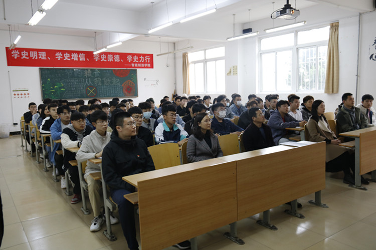 本站讯 3月31日,智能制造学院在二号教学楼A102举行“师生党史宣讲团”成立仪式,学院分管副院长魏彦波、全体辅导员、青年党员教师、入党积极分子、全体学生干部及各班团支书参加了仪式。