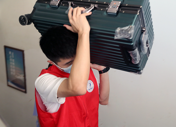 2020级老生组成迎新志愿者小组,积极为新到来的学弟和学妹们提供帮助。报到过程中,学长学姐们热心的为新生和家长答疑解惑,搬运行李,引导每一位新生办理宿舍登记、床品餐卡领取等事宜,确保新生能够安全、顺利完成报到。