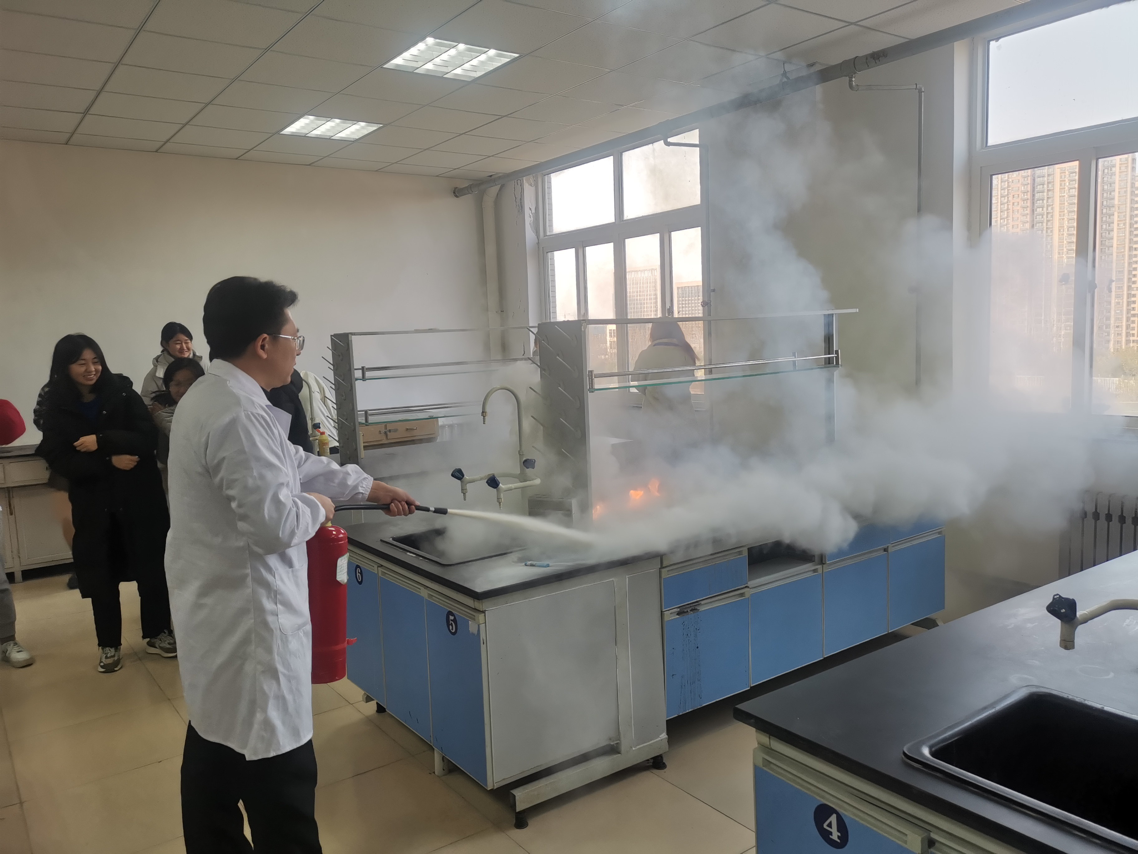 此次活动,分别从紧急火情、危化品扩散、触电休克三个方面进行应急演练。紧急火情应急演练中,赵强老师讲解了消防安全常识、火灾预防措施、灭火器的使用方法,现场示范了灭火器的使用;危化品扩散应急演练中,通过情境模拟,引导学生从东西两侧疏散通道撤离,切断电源,关闭扩散点前后门,正确打开窗、通风系统做到有效通风;触电休克应急演练中,通过模拟学生触电,主要从正确断电、紧急心肺复苏和等待120救援三个方面进行演练。