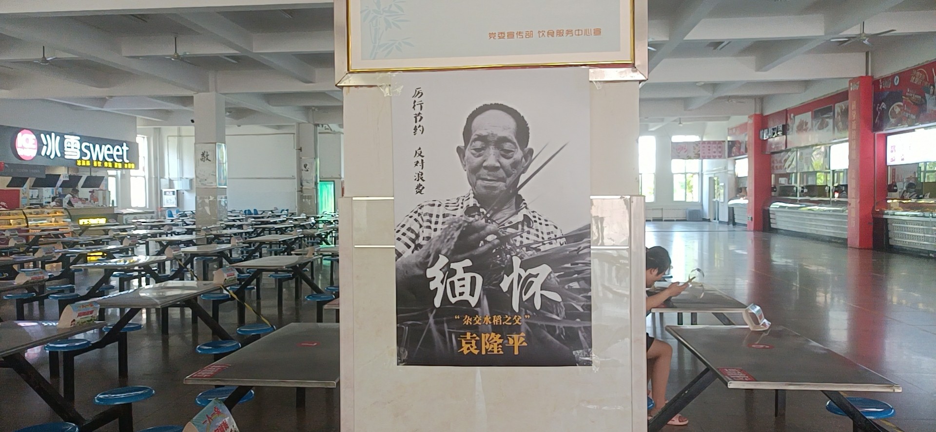 本站讯 5月22日,在袁隆平院士逝世一周年之际,后勤服务处饮食服务中心在学生食堂以厉行节约、反对浪费的形式深切缅怀袁隆平院士。