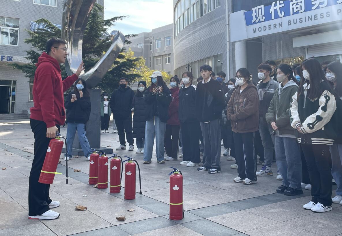 11月4日上午,学院在安全保卫处大力支持下,组织全体学生会成员、各班级学生干部、普通学生代表共87人在实训中心空地进行灭火实操演练。安全保卫处车正老师讲解了灭火器材的正确使用方法,初期火灾的正确处置。演练现场,工作人员点燃易燃品模拟火灾场景,学院学生使用灭火器材进行灭火演练。22级广告1班王琰喆说到:“本次冬季消防应急演练,学习了消防安全知识,增强了安全防范意识,锻炼了应对突发火情的能力,这次演练收获满满。”