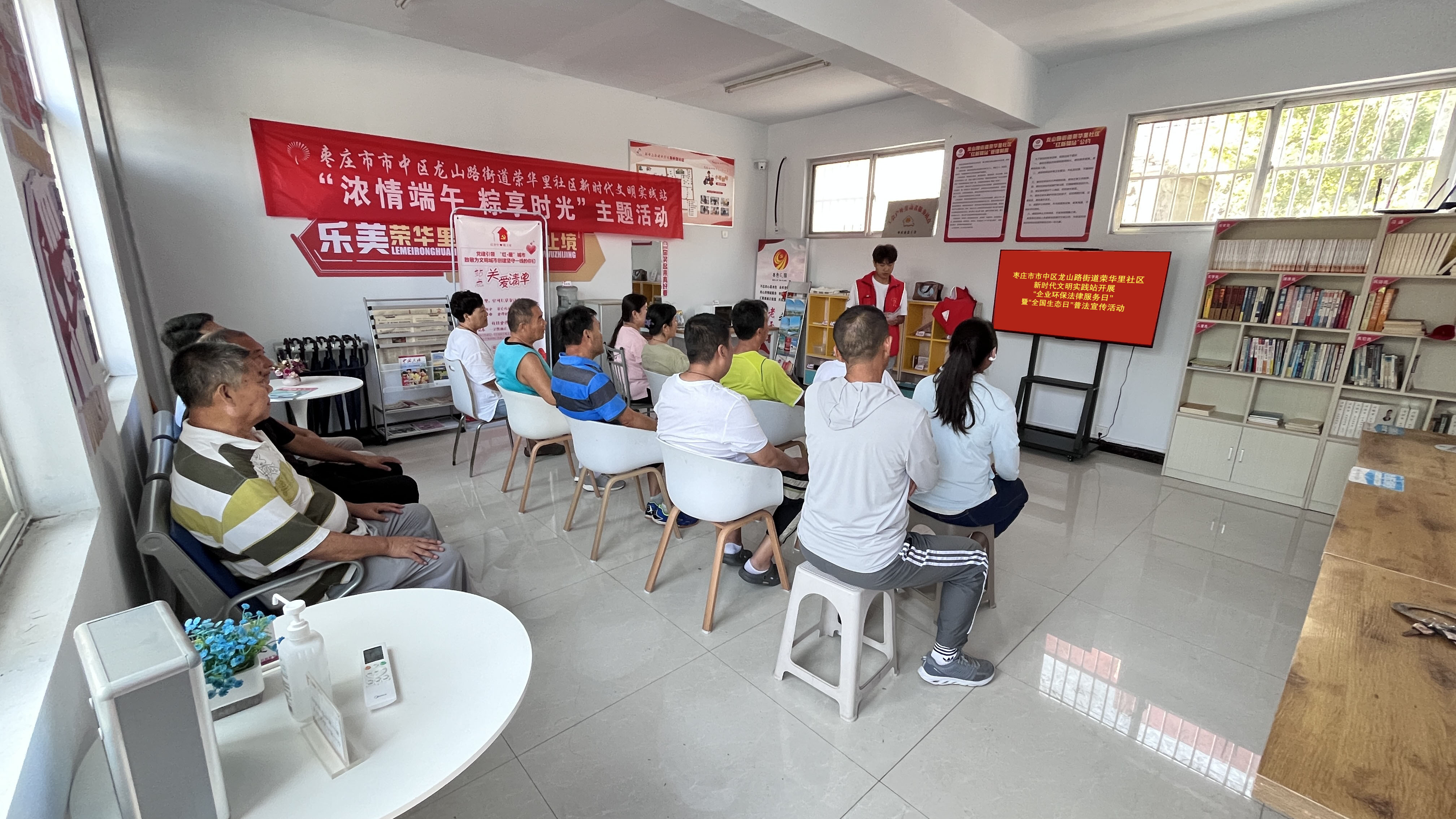 在荣华里社区,志愿者们在社区工作人员的带领下布置了“新时代文明实践站”,参与了社区人居环境整治工作,开展了“全国生态日”普法宣传活动,并亲身体验了社区党务工作;在诸城名人馆、诸城新时代文明实践中心、尽美公园等地,志愿者们在相关工作人员带领下,投身公共服务和环境治理工作当中,不惧炎炎烈日,引导游客、清理卫生、摆放桌椅、整理路牌;在蔡家沟村,同学们在当地社区进行推普宣传,并探望了留守儿童和孤寡老人。