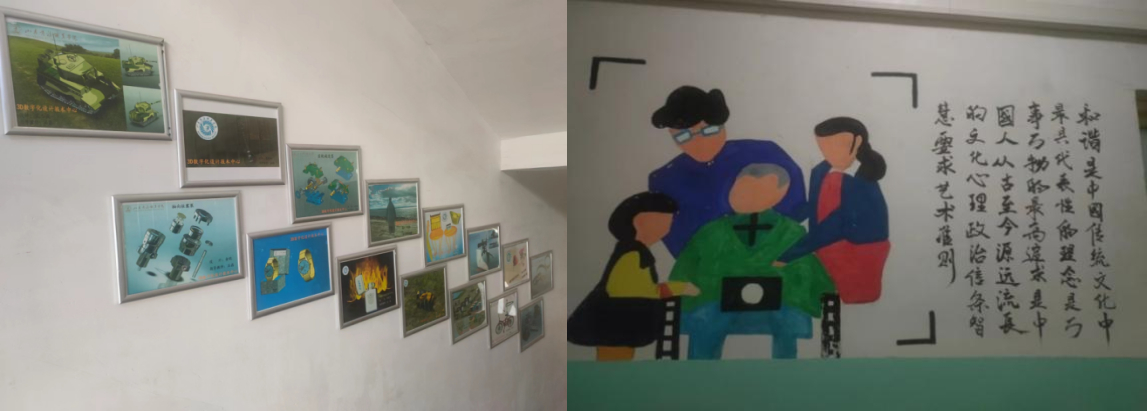专业和红色文化结合,优秀文化进宿舍。智能制造学院将专业文化与优秀传统文化相结合,从机械零件、低压电器,如电动机、法兰、按钮、时间继电器、空气开关等图文符号,到毛泽东的《沁园春·雪》《水调歌头·游泳》、苏轼的《赤壁怀古》、李白的《将进酒》等传统诗词歌赋,图文并茂绘制专业和传统文化结合的艺术走廊,打造富有专业特色的优秀宿舍文化生活育人环境,增强学生的职业自信和文化自信。