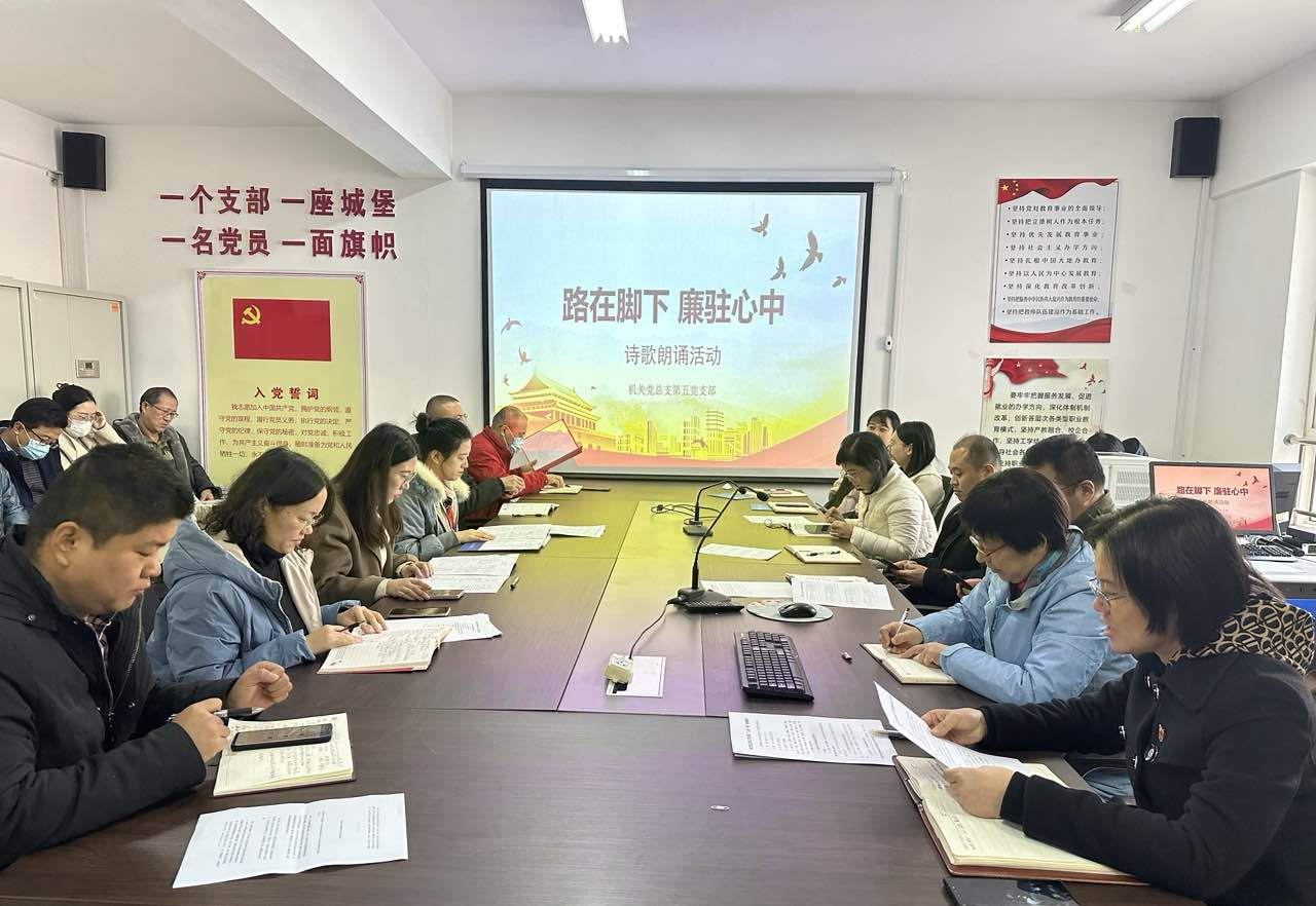 本站讯 为推进学校党风廉政建设,涵养拒腐崇廉风尚,褒扬校园清风正气,浓厚“清廉支部”文化氛围,12月5日上午,机关第五党支部开展了“路在脚下,廉驻心中”诗歌朗诵活动。