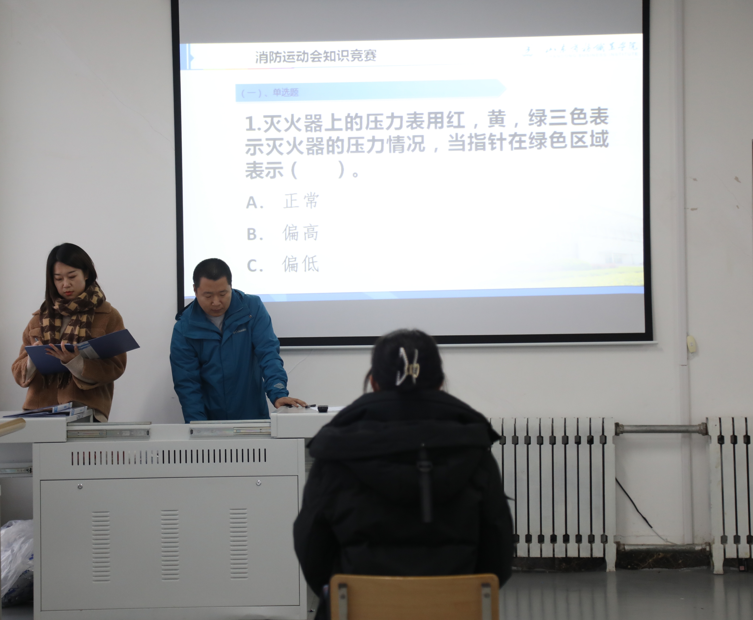 本站讯 为深入践行“预防为主、生命至上”理念,充分调动学校师生学习消防知识、参与消防安全的积极性和主动性,12月15日和12月19日,我校在体育馆和党性教育基地分别举行教职工组和学生组消防知识竞赛。学生工作处(团委)、基础教学部、宣传统战部、工会、安全保卫处有关人员组织竞赛,各分会参赛干部职工和各二级学院参赛学生参加竞赛。