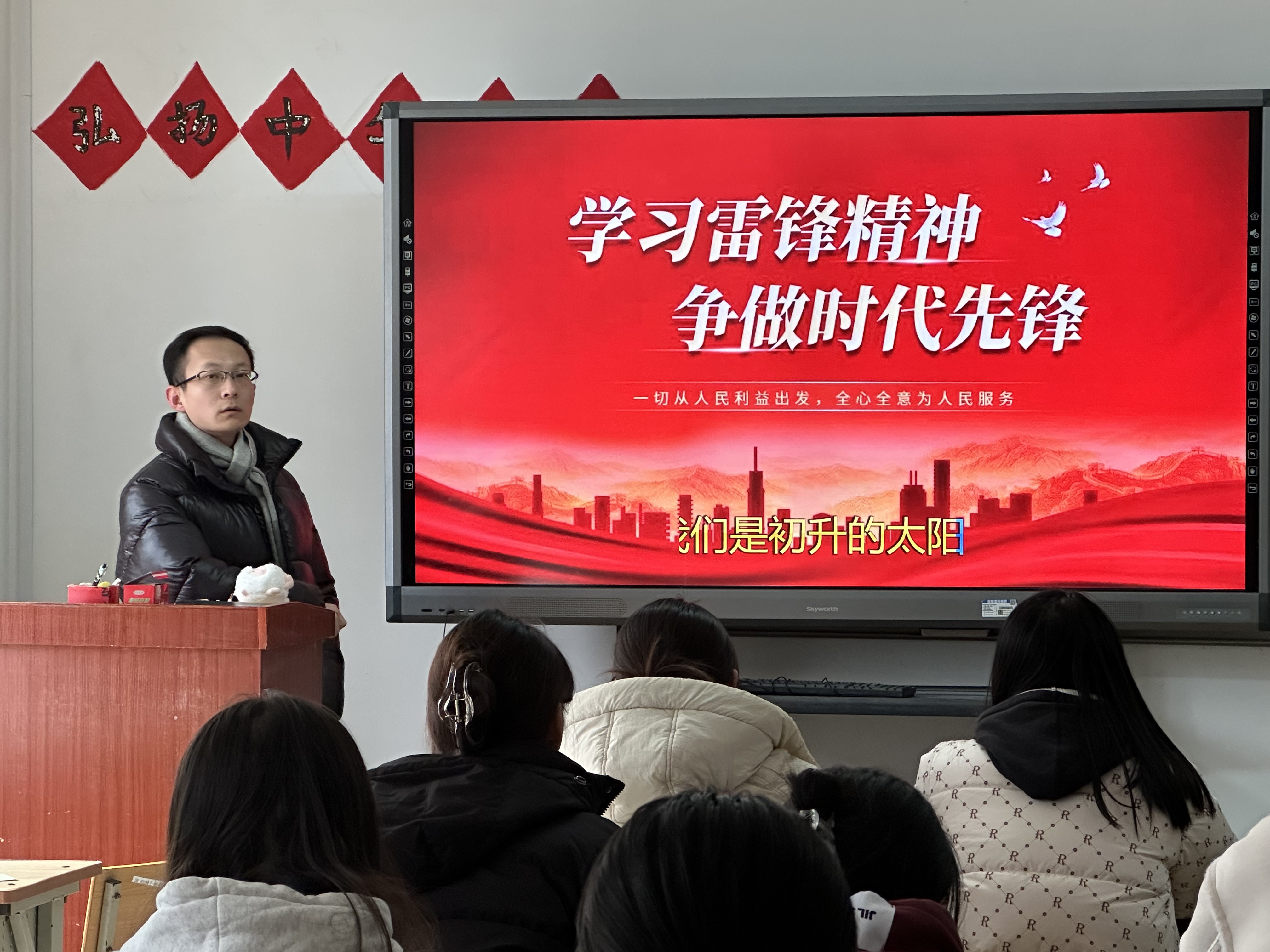 开展“传承雷锋精神,汲取奋进力量”主题团课。辅导员、班主任围绕什么是雷锋精神、为什么要学习雷锋精神、如何发扬雷锋精神三个方面向同学们介绍雷锋精神的内涵和时代价值。强调学习和践行雷锋精神的重要性,鼓励大家在日常生活中坚持“全心全意为人民服务”的宗旨,积极参与志愿服务和社会实践。同学们纷纷表示,作为大学生,要带头学雷锋,积极参加志愿服务,从小事做起,以实际行动赓续传承雷锋精神。