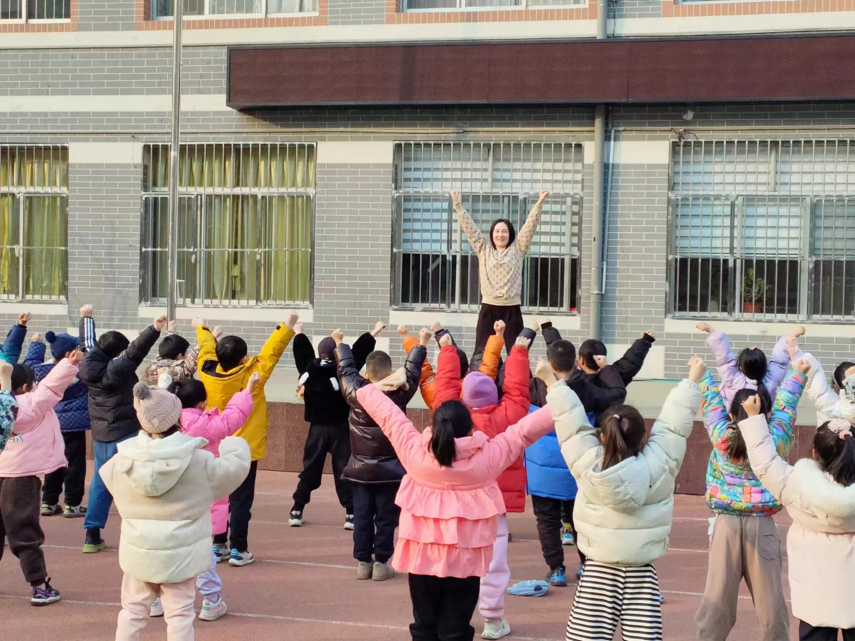 本站讯 3月26日下午,基础部党支部第二党小组的体育老师们走进芝罘区潇翔小学,普及啦啦操运动。本次进校园活动,以啦啦操运动为载体,不仅致力于推动啦啦操运动的普及和发展,还巧妙地融入了美育元素,为孩子们带来了一场体育与艺术的双重魅力。