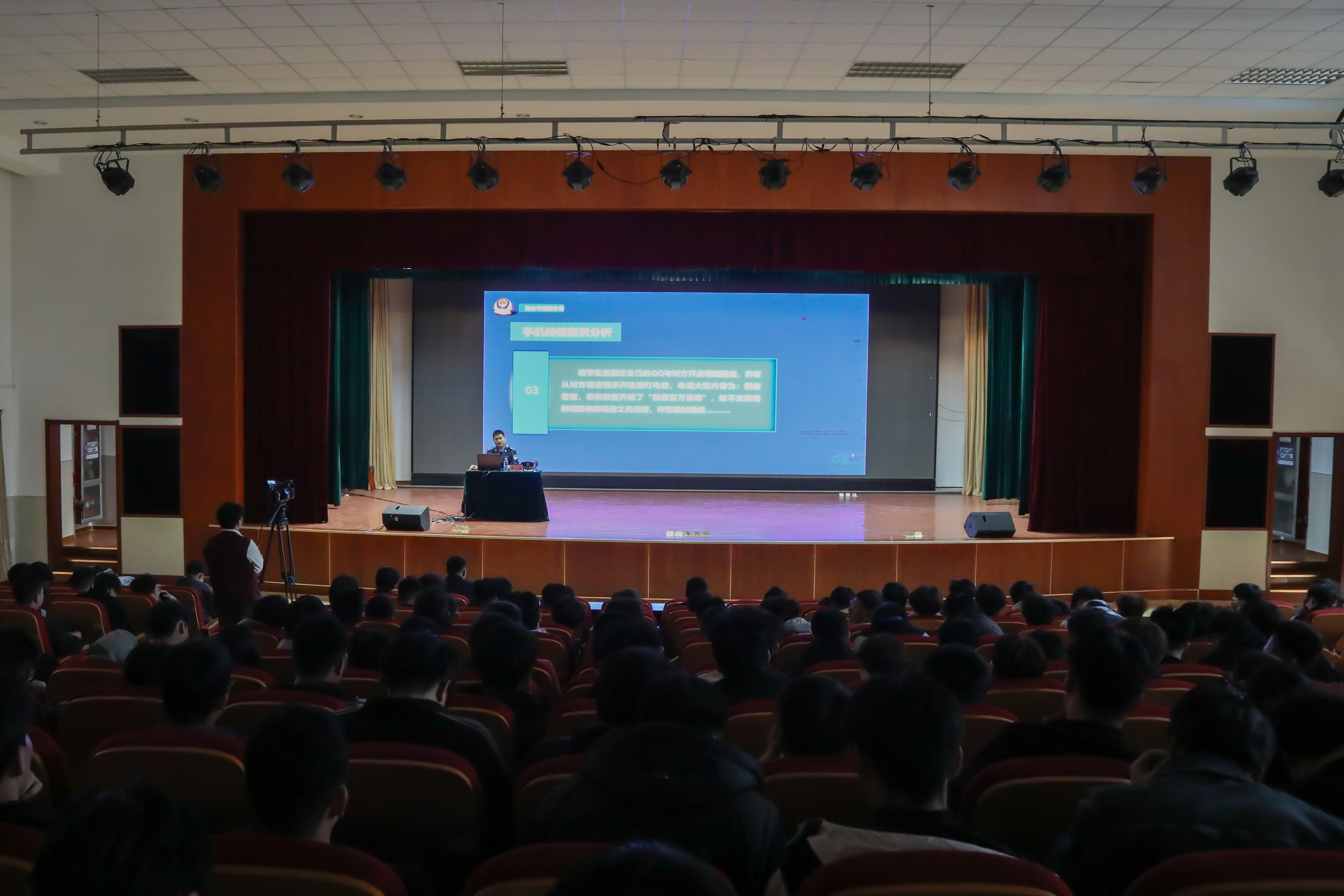 李警官首先对烟台近三年的大学生受诈骗情况进行了分析,从学生的角度说明为什么学生易受骗,列举了作为学生的同情心易被利用,法律金融、知识储备不足,社会阅历少等八个特质。随后对电信诈骗的作案手法、技术、话术、套路等进行了详细的介绍和剖析,将电信诈骗分子的常用手段摆在大家眼前,让师生们对电信诈骗有了更加深入和全面的了解,提高了师生的警戒性,明晰了电信诈骗的危害,让电信诈骗在校园里无处遁形。最后将整理出来的“三不一多绝不信”原则向师生进行普及,简明扼要,深入浅出地让大家学会“反诈防身术”。