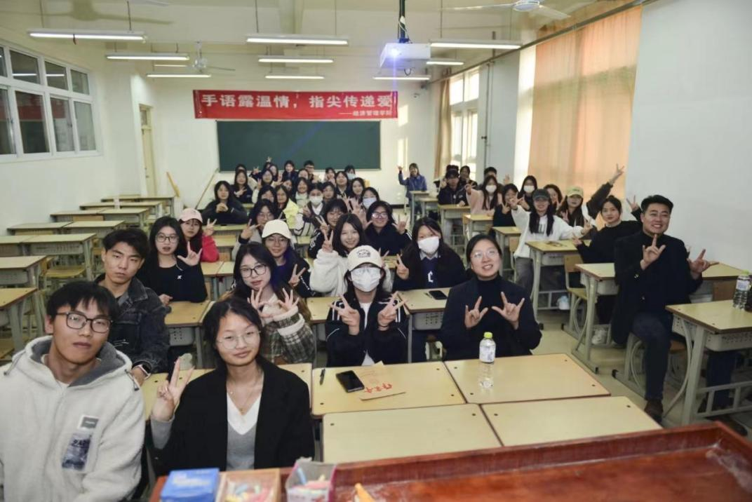 本站讯 近日,经济管理学院“一站式”社区以“手语露温情,指尖传递爱”为主题,联合爱聋手语研究中心精心策划了一门适合大学生学习的入门级手语课,同学们热情高涨、积极参与。通过互动游戏等丰富的教学形式,向学生普及基本的日常手语知识,帮助学生掌握简单实用的手语技巧,让学生们深刻感悟聋人生活的艰辛与不易,提升学生们的社会责任感。