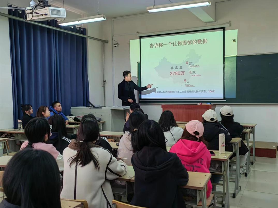 随后,爱聋手语研究中心的翟主任以《现在,让我们一起走进他们的世界》为题进行了授课,给同学们分享了聋人文化。