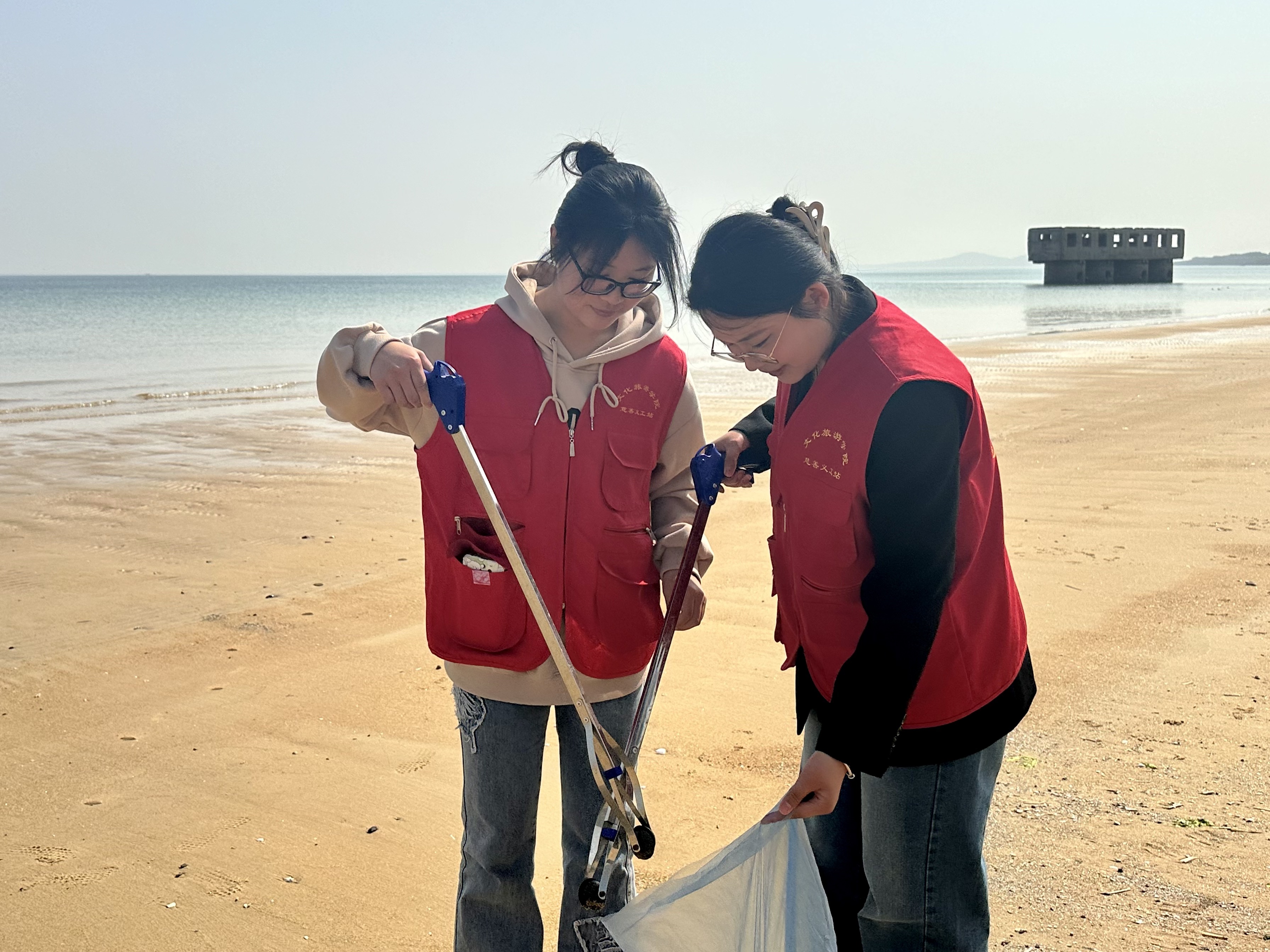 来到天越湾海滩,文旅学子身穿红马甲、手持垃圾夹和垃圾袋,两人一组,分工明确、配合默契,对海滩的垃圾进行“地毯式”清理,垃圾袋很快被废渔网、塑料袋、玻璃瓶填满。此次活动共清理了约1000米海岸,文旅学子以实际行动践行了环保理念,传递了正能量。活动结束后,同学们纷纷表示,虽然辛苦,但看着洁净美丽的海岸线,成就感和自豪感油然而生。22级应用英语1班的周新如同学说:“地球是我们唯一的家园,保护环境、善待地球是我们共同的责任。同呼吸共命运,绿色地球你我守护。”