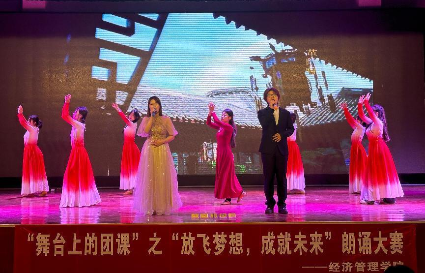 本站讯 为进一步丰富校园文化生活,深入推进“三全育人”,不断擦亮学校“青字号”文化活动品牌,4月22日,我校举办2024年大学生科技文化艺术节系列活动—“舞台上的团课”之“放飞梦想,成就未来”朗诵大赛,本次比赛由经济管理学院承办,共16个代表队参赛。