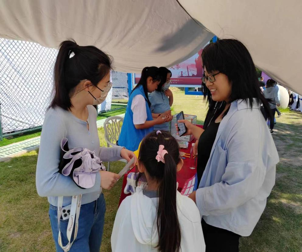 活动现场营造了互动式美育场景,在美育大课堂区域,马克思主义学院教师宋美超为孩子和家长们讲解了美育知识。宋美超老师从家庭生活中的小案例入手,为家长教授亲子沟通技巧,助力孩子们健康成长;在美育知识问答区,段鑫鑫老师通过文明素养答题的形式,为家长和儿童介绍儿童文明素养相关知识,旨在引导他们树立正确的道德观念,养成良好的行为习惯,促进儿童个人成长以及传承和弘扬中华优秀传统文化。