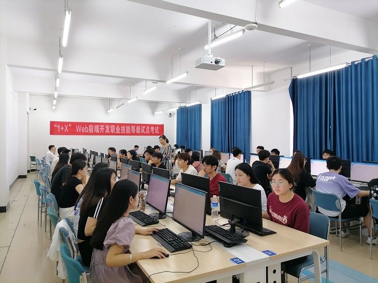 本站讯 由工信部教育与考试中心主办,我校信息工程学院组织的2024年1+X“Web前端开发”等级证书(中级)考试,于6月23日上午完成,2022级计算机应用技术专业共100名学生报名参加了考试。