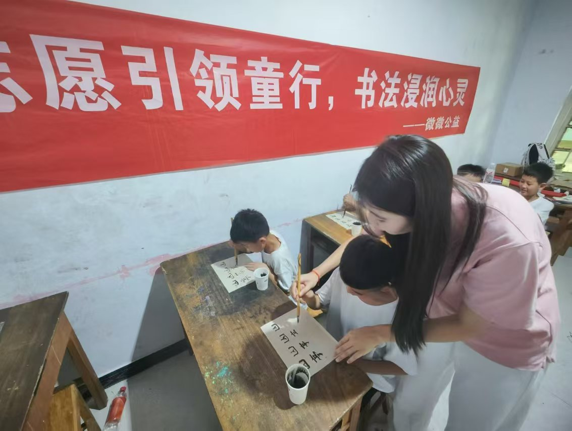 本站讯 近日,经济管理学院微微公益志愿服务团队奔赴临沂市开展暑期社会实践活动,青年志愿者带着对中华优秀传统文化的深厚情感与责任担当,走进罗庄超强武校,充分发挥专业及兴趣特长开展了形式多样的志愿服务活动。8月12日,一场以“志愿引领童行,书法浸润心灵”为主题的传统书法公益课拉开本次社会实践的序幕。