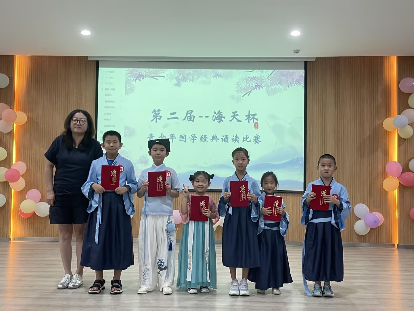 本站讯 8月22日,海天社区举办了第二届“海天杯—青少年国学经典诵读比赛”,旨在弘扬中华优秀传统文化,激发社区儿童对国学经典的热爱与传承之心。此次活动,基础部党支部积极响应,凭借其深厚的国学底蕴和丰富的诵读活动经验,派出支部书记张雁和党员张志伟两名老师担任评委,为比赛的专业性与公正性保驾护航。