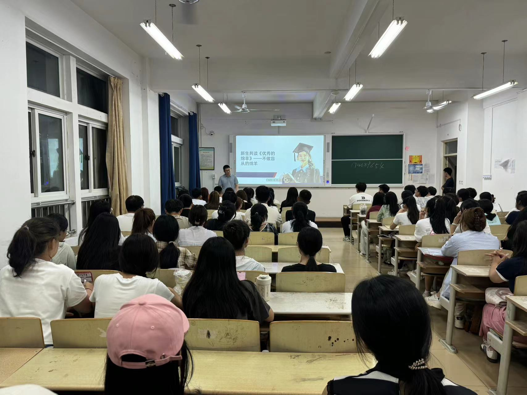 本站讯 近期,粮油食品学院面向全体2024级新生,举办了以共读《优秀的绵羊》为主题的开学第一堂心理课活动。本次活动旨在帮助新生尽快适应大学生活,通过思辨与反思,让他们在这个人生的重要阶段学会独立思考,树立个人目标,避免盲目跟随他人的脚步,迈向更富有意义的大学生活。