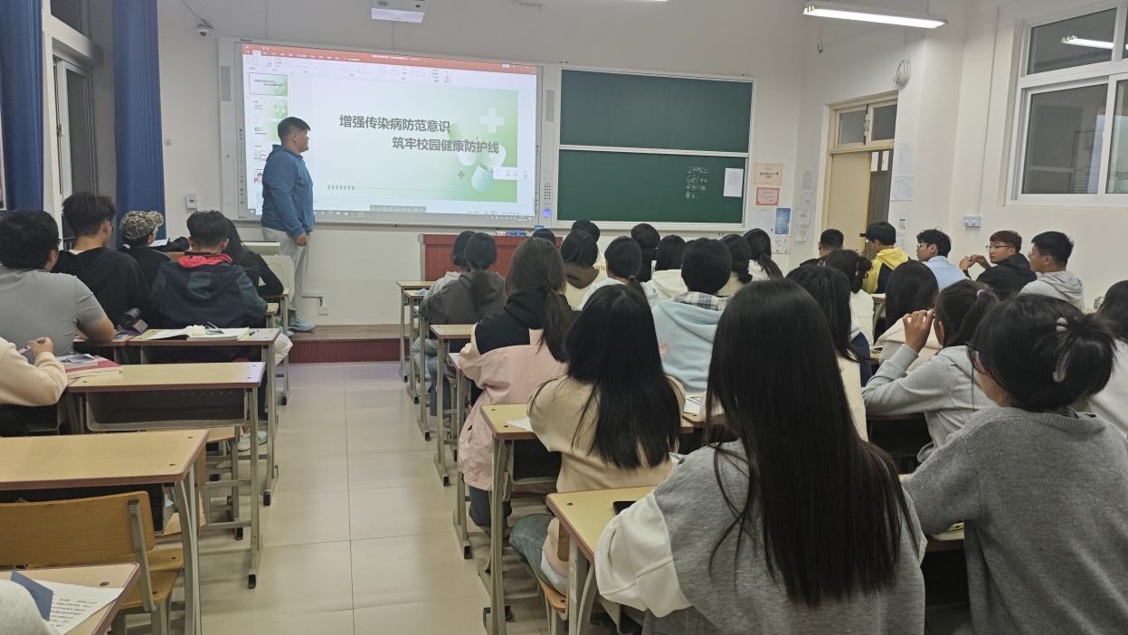 育心铸防,同为健康护航。通过开展主题教育,各班负责人利用PPT和视频的形式向同学们讲解秋冬季常见传染疾病和个人预防措施。增强同学们对各类高发传染病的认知,倡导同学们养成良好的卫生习惯和生活方式,提醒同学们如有不适及时就医。