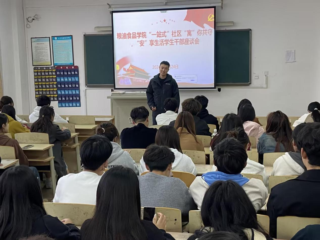 本站讯 为进一步发挥学生干部在社区生活中的模范带头作用,强化“一站式”社区安全管理,粮油食品学院开展“一站式”社区“寓”你共守、“安”享生活学生干部座谈会。