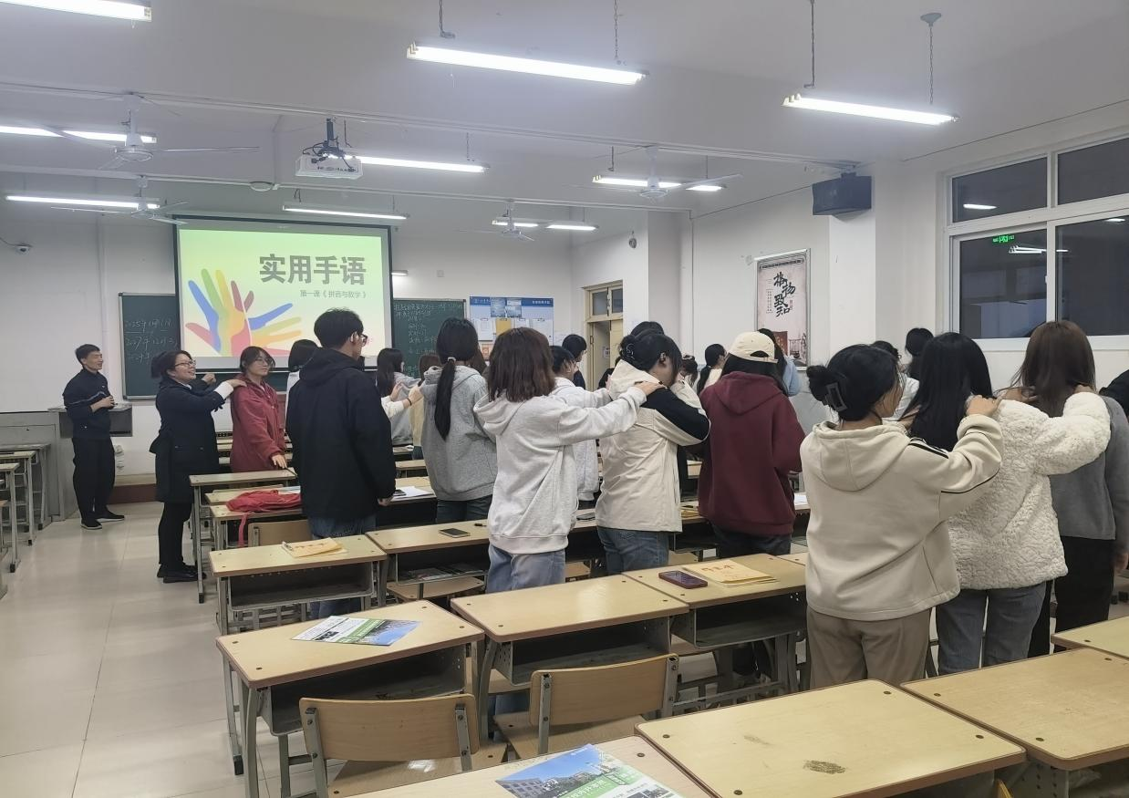 课堂伊始,爱聋手语研究中心的杜杰老师讲授了聋人群体在社会中面临的沟通障碍和孤独。杜老师用生动的案例和真挚的话语,让同学们深刻感受到聋人群体的困境,也更加明白了手语对于聋人群体与外界交往的重要性。同学们聚精会神地聆听,眼神中流露出对聋人群体的关爱。