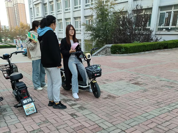 为进一步增强大学生电动车骑行安全意识,营造安全有序的校园交通环境,学院积极开展安全骑行教育活动。辅导员老师们在中心大道这一校园交通流量较大的区域,在学生们上下课高峰期时段,对过往骑行电动车的同学进行一对一的安全提醒。“同学,请佩戴好头盔,保障自身安全。”“骑行时不要看手机,注意遵守交通规则。”一声声关切的叮嘱,伴随着同学们的骑行之路。辅导员们还现场示范了正确佩戴头盔的方法,对部分同学电动车上的安全设施进行检查,如刹车灵敏度、灯光是否正常等,对发现的问题及时告知同学并督促其尽快进行维修。学院还通过主题班会、悬挂横幅等形式,为同学们构建起一道坚实的安全防线。