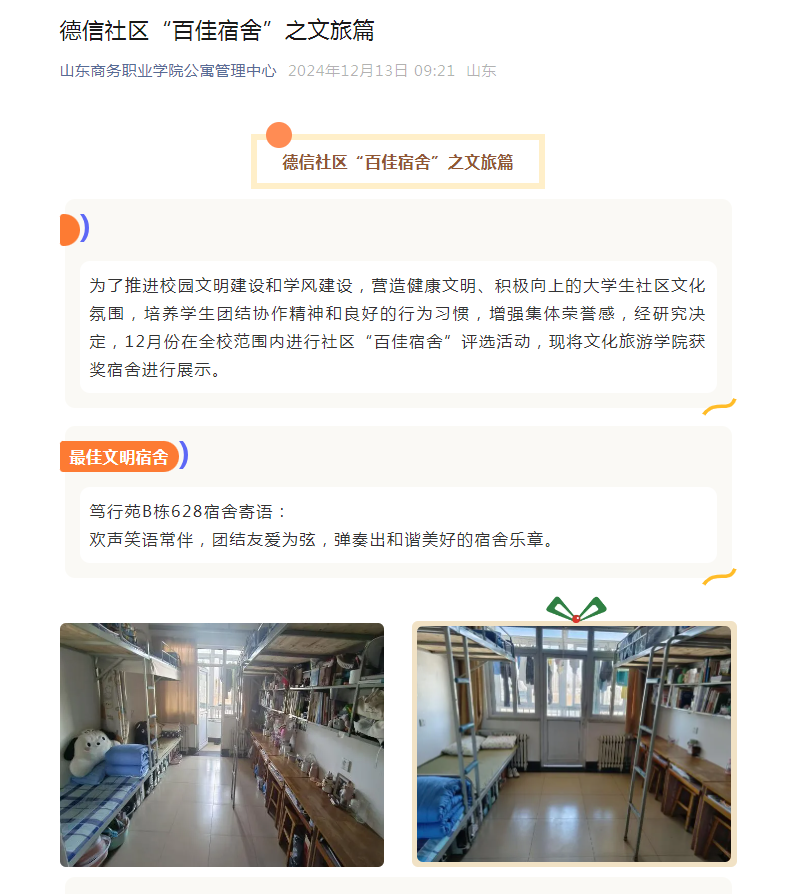 学校举办德信“一站式”社区“百佳宿舍”评选活动