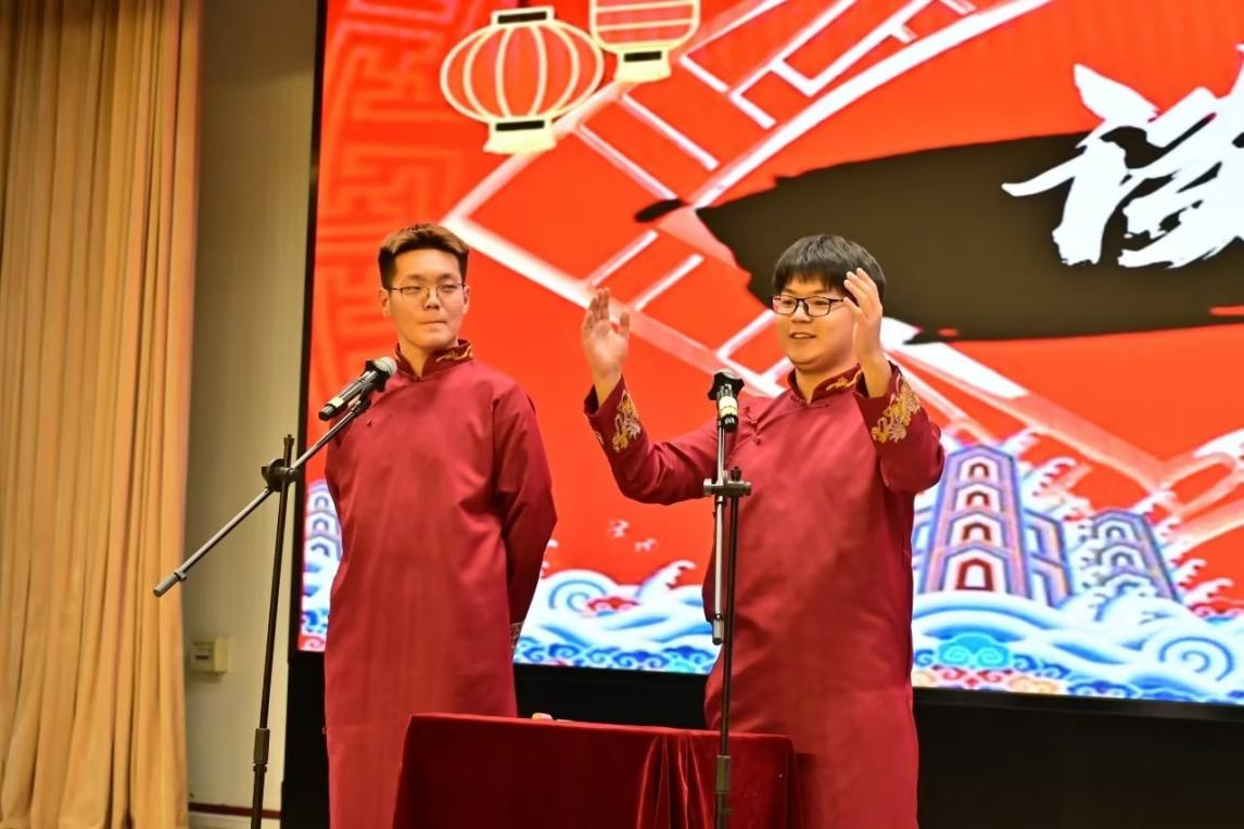 随后,晚会正式拉开帷幕,一系列精彩节目轮番上演。歌曲演唱环节,同学们用嘹亮的嗓音唱出青春的旋律,既有经典老歌的深情演绎,又有当下流行歌曲的热情传唱,灵动的音符在空气中流淌,引发观众的强烈共鸣,同学们跟着节奏轻声哼唱。舞蹈表演更是吸睛无数,现代舞充满力量与激情,炫酷的动作、多变的节奏,彰显着青春的活力与不羁,台下观众纷纷被舞者们的热情所感染,目不转睛地欣赏着每一个精彩瞬间。语言类节目也毫不逊色,相声表演妙语连珠,两位演员一唱一和,包袱不断,现场气氛一次次被推向高潮。在互动环节,主持人邀请师生上台参与趣味游戏,大家踊跃报名,现场气氛热烈欢快,游戏胜利者获得了学院精心准备的新年礼品。