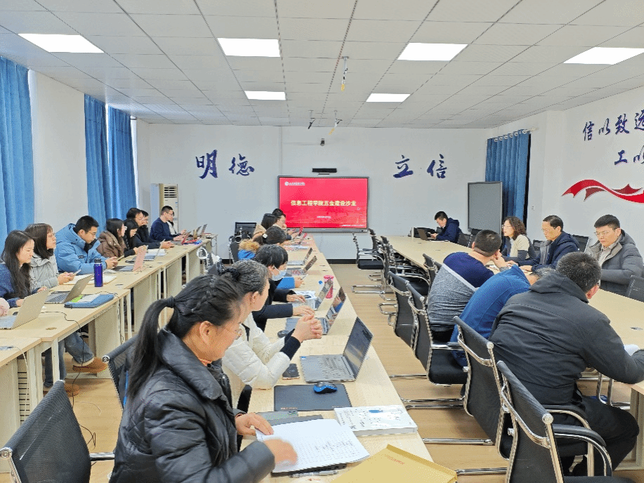 本站讯 1月15日,信息工程学院组织开展“五金”建设沙龙活动,分享2024年“五金”建设的工作成果,指导2025年“五金”建设工作方向。信息工程学院全体专任教师参加此次活动。