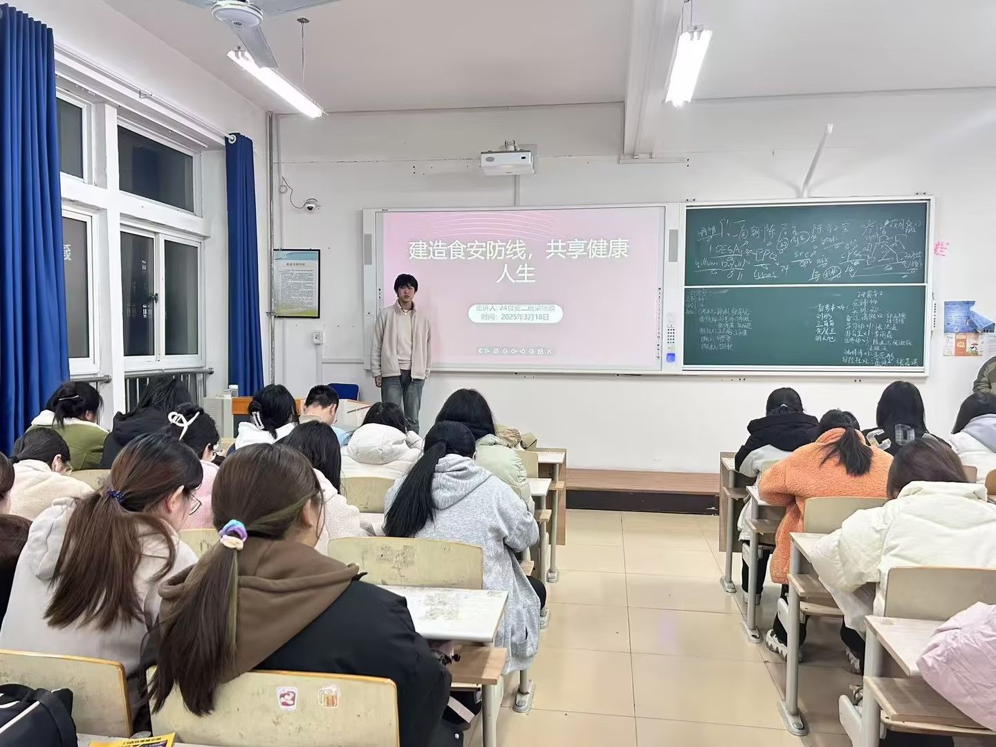 本站讯 3月18日,粮油食品学院开展“建造食安防线 共享健康人生”主题团课,并与食品安全和食物健康知识主题班会联动召开。
