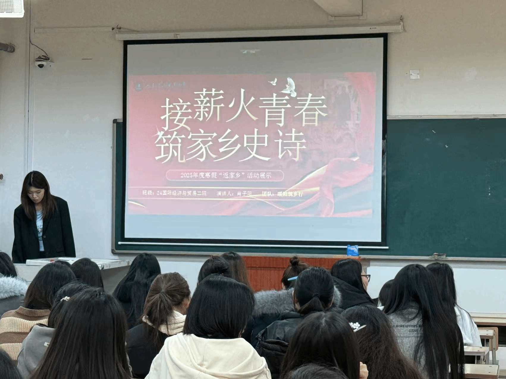 团队展示环节中,各团队代表通过PPT演讲、视频播放等形式,生动形象地展示了他们在寒假期间深入基层、服务家乡的实践经历和成果。在个人展示环节中,大家分享了自己在寒假返家乡实践中的经历和收获,同学们表示:“此次返家乡社会实践活动加深了对家乡的认识,也明白了自己肩负的责任。我们要努力用所学知识为家乡发展贡献更多力量。”