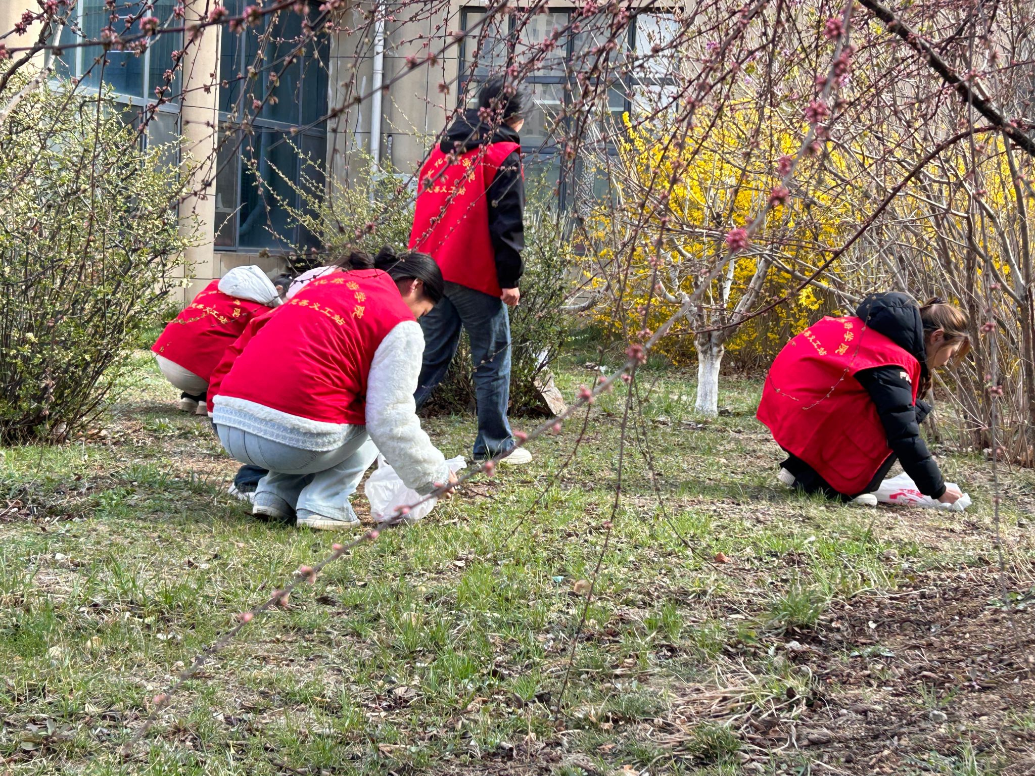 在社区物业人员的指引下,志愿者们手持清洁工具,对绿化带、健身广场、楼道等公共区域展开“地毯式”清扫。他们弯腰捡拾垃圾、擦拭宣传栏、清理卫生死角,忙碌的身影成为社区一道亮丽风景。23级应用英语1班张淼淼同学表示:“弯腰捡起的不仅是垃圾,更是文明的责任。这次实践让我深刻体会到雷锋精神的时代价值。”