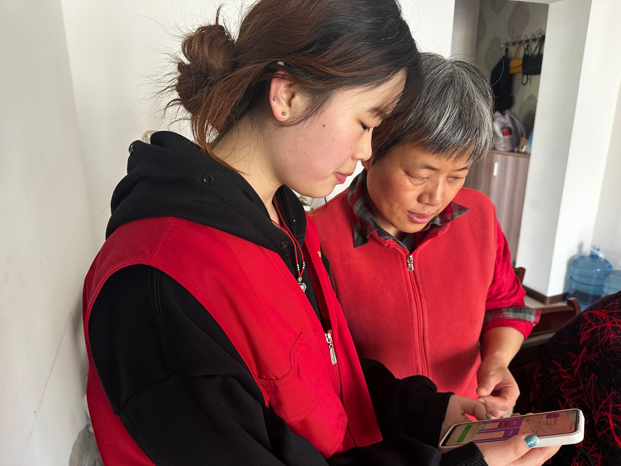 上午8时,身着红色马甲的志愿者们整齐列队抵达社区。社区工作人员围绕服务内容、安全规范、沟通技巧等对志愿者进行了系统培训。志愿者们分组开展“智慧助老”服务,耐心指导社区老人下载国家反诈中心APP,并结合典型案例讲解新型诈骗手法。“这些孩子既耐心又热情,讲得清楚明白!”社区居民王阿姨为志愿者们竖起大拇指。