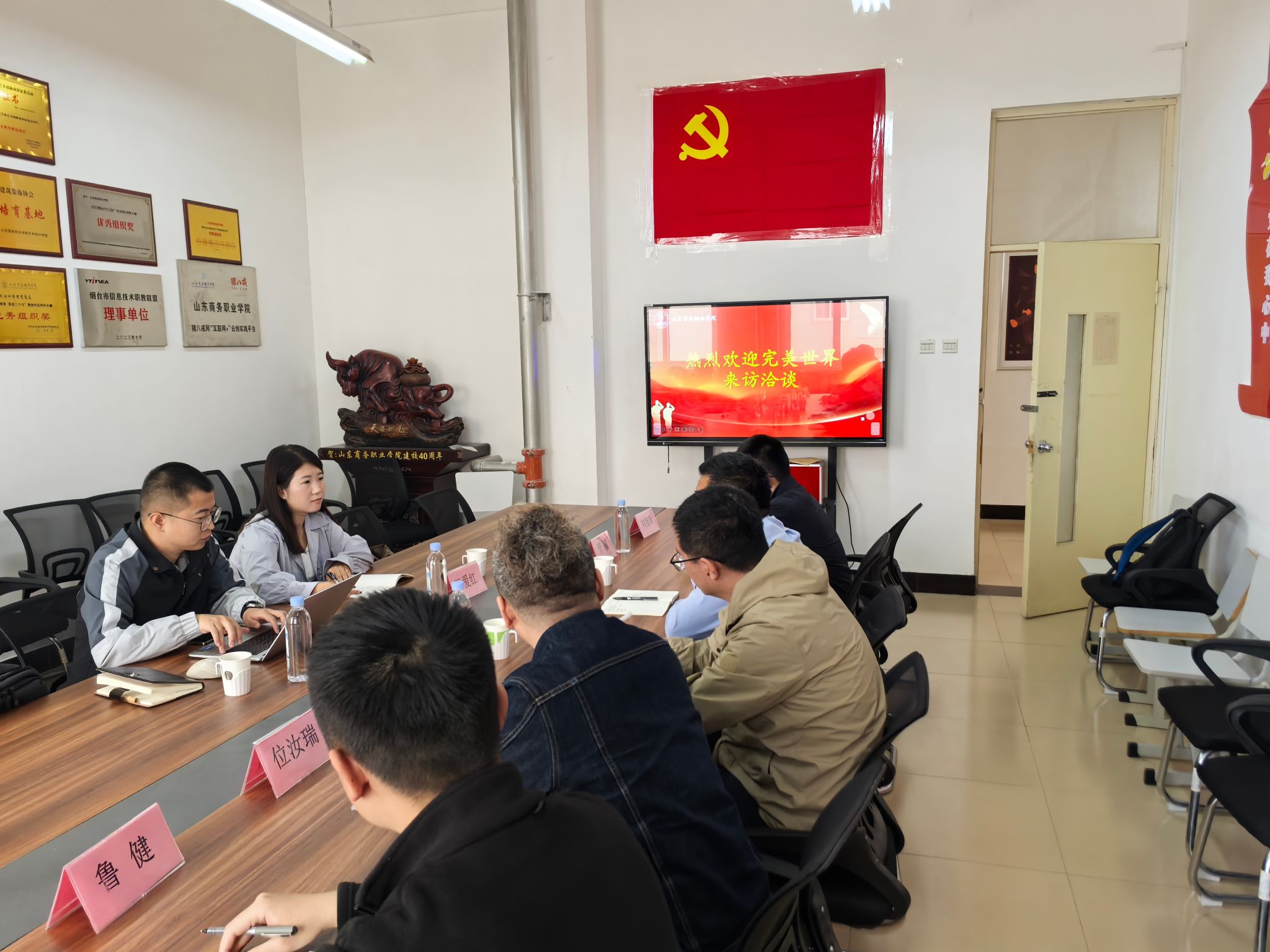 本站讯 近日,艺术设计学院与国内数字文创领军企业完美世界就校企合作事项在1B404举行洽谈,双方围绕产教融合、人才共育、技术创新等领域展开深度探讨,共同探索艺术教育与产业需求无缝衔接的新范式。
