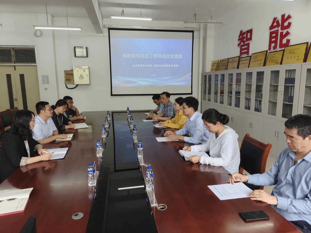 本站讯 为深化产教融合、推进高职院校现场工程师培养模式创新,5月22日,烟台文化旅游职业学院电气与动力工程系主任姬广永率教学科科长张力凡、培训处处长徐忠庆、工业互联网教研室主任李超及骨干教师王娜、周德荣一行,来我校开展专题交流研讨。智能制造学院院长魏彦波、副院长崔艳及工业机器人技术专业教研室主任李娟、电气自动化技术教研室主任汤受鹏,青年教师王成帅等热情接待并参加座谈交流。