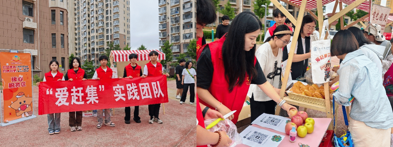 活动当日,党员教师与海兴社区工作人员携手合作,精心打造了一场融合科技助农、文化传承、便民服务于一体的“幸福集市”。学院“爱赶集”社会实践团队成为助农惠民的闪亮名片。他们精心布置的烟台栖霞肖家夼苹果、寓意吉祥的胶东花饽饽系列产品以及独具风味的烟台特色面点展台前人头攒动。团队成员热情邀请居民免费品尝,细致讲解产品背后的乡土故事与助农意义,以互联网思维拓宽特色农产品销路,助力乡村全面振兴。与此同时,“AI剪纸团队”也将传统剪纸艺术与现代技术相结合,展示了技术赋能下的剪纸产品。精美的剪纸作品栩栩如生,吸引众多居民驻足欣赏这一“指尖上的智慧”。