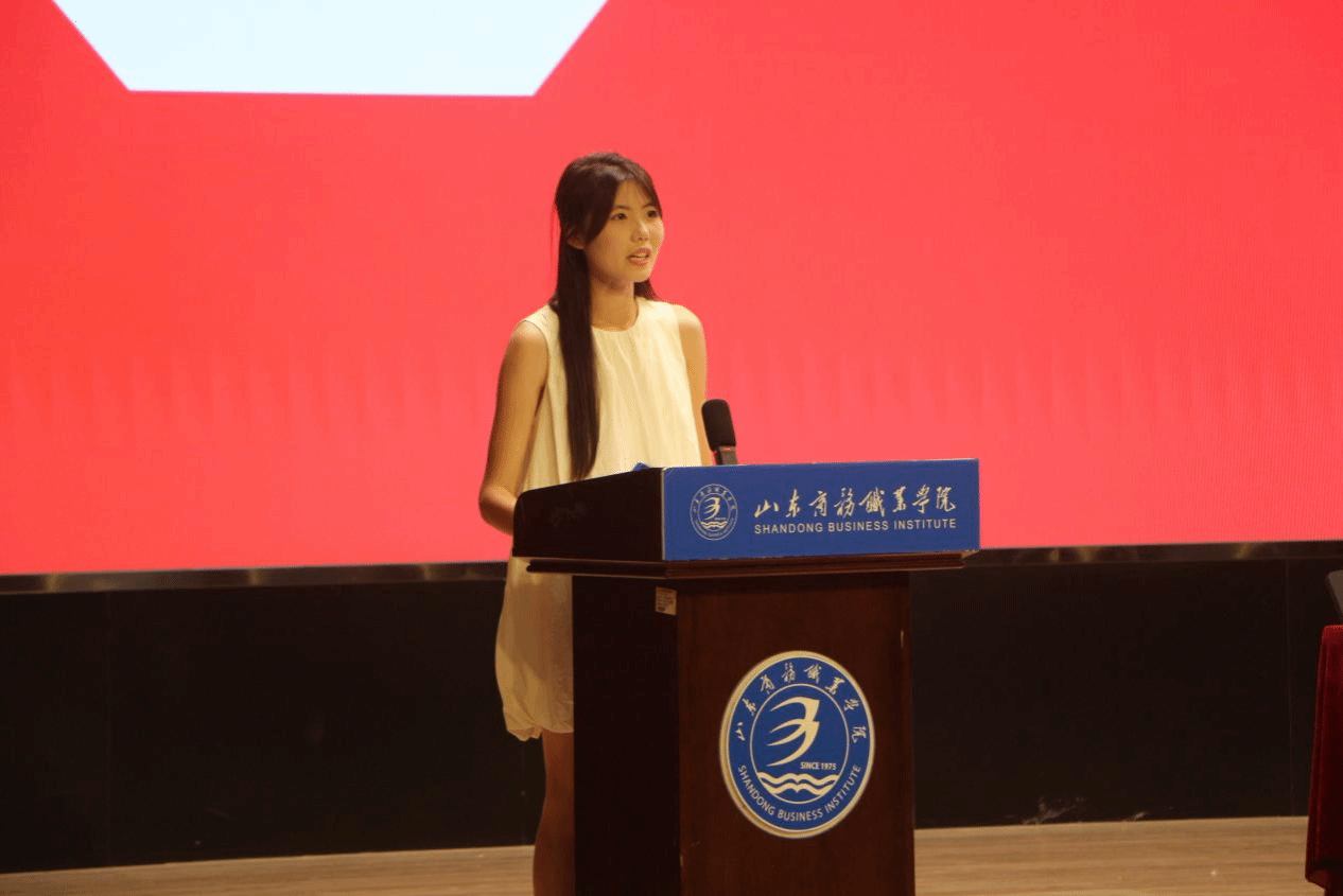 在校生代表曲祥瑞上台表达了对学长学姐们的敬意与祝贺。她坦言学长学姐们的优秀事迹是自己前进路上的灯塔,激励着自己不断奋进,提升综合素质。