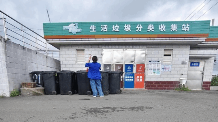 第三站,志愿者来到社区生活垃圾分类收集站,向居民普及“可回收物、厨余垃圾、有害垃圾、其他垃圾”的分类标准,还特别为老年人现场演示旧电池、菜叶、快递盒等常见物品的正确投放方式。