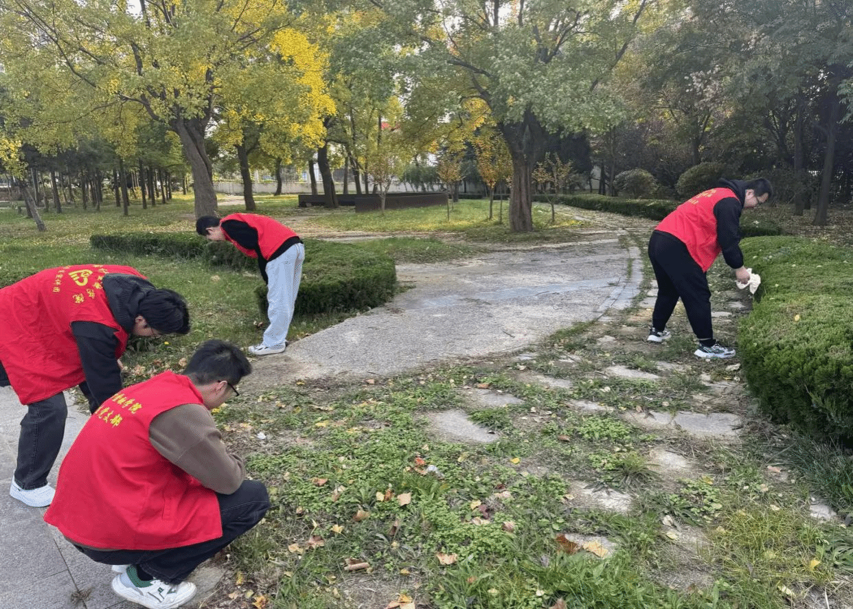 在放松身心之后,资助委员们迅速切换到“志愿模式”,开展公园垃圾捡拾志愿服务活动。大家手持垃圾袋、夹子等工具,分工协作、默契配合,沿着公园的步道、河岸、草坪等区域认真巡查,将散落的塑料瓶、食品包装袋、纸屑等垃圾逐一捡拾干净。遇到隐藏在草丛中的垃圾,大家便弯腰俯身仔细清理,不放过任何一个卫生死角。