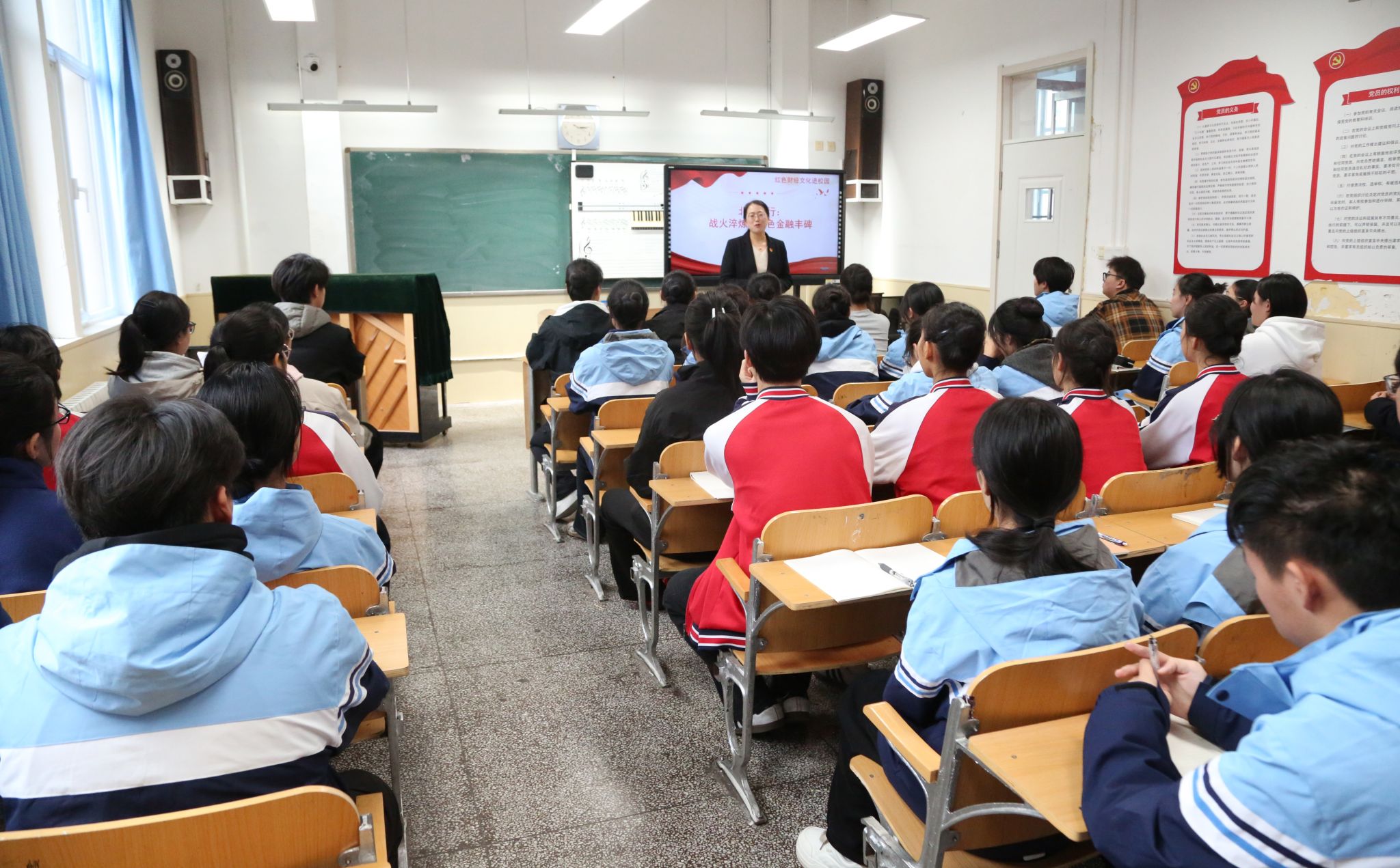 在“红色财经文化进校园”主题活动中,会计金融学院教师党支部书记邹婷以“战火淬炼的红色金融丰碑”为主题,通过详实的史料和生动的案例,讲述了北海银行在革命战争年代的创建背景、发展脉络与历史贡献,引导在场师生深刻感悟革命先辈的金融智慧与责任担当,让红色财经基因在课堂中落地生根。