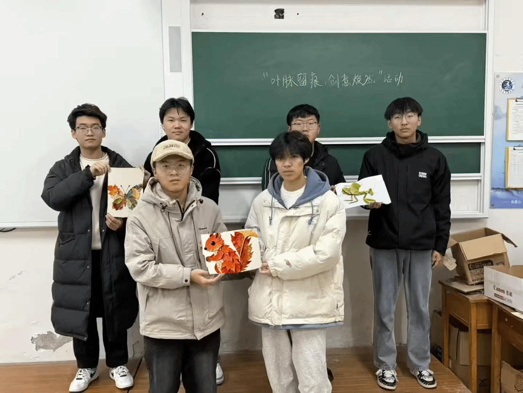 “叶脉留痕·创意焕彩”落叶手作活动也吸引了大量同学踊跃参加。大家漫步校园,精心收集形态各异、色彩缤纷的落叶,通过剪裁、拼贴和绘画等多种方式,将自然之美转化为永恒的艺术。作品形式多样,既有写实风格的风景画,也有抽象构图的装饰创作,风格清新明朗、积极向上,充分融合自然美学与个性表达,为肃静的冬日校园注入了温暖与生机。