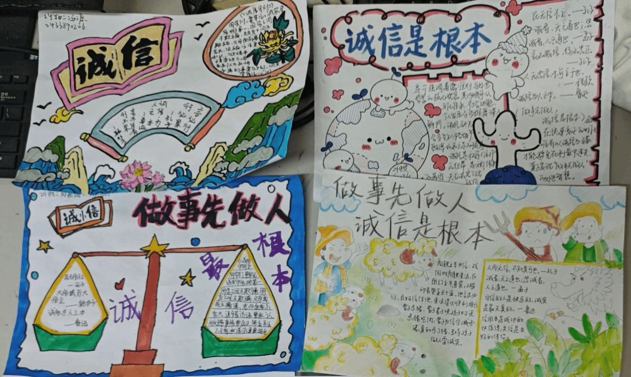学院同步举办了诚信主题手抄报征集活动,各年级学生积极参与,围绕诚信故事、格言警句、诚信与成长等主题进行创作。一幅幅图文并茂的手抄报,在方寸之间展现了对诚信的多元理解与艺术表达。诚信手抄报活动的成功举办,不仅为同学们提供了一个展示自我的平台,更以艺术创作的方式将诚信教育融入校园文化生活,进一步使诚信教育在潜移默化中浸润人心。