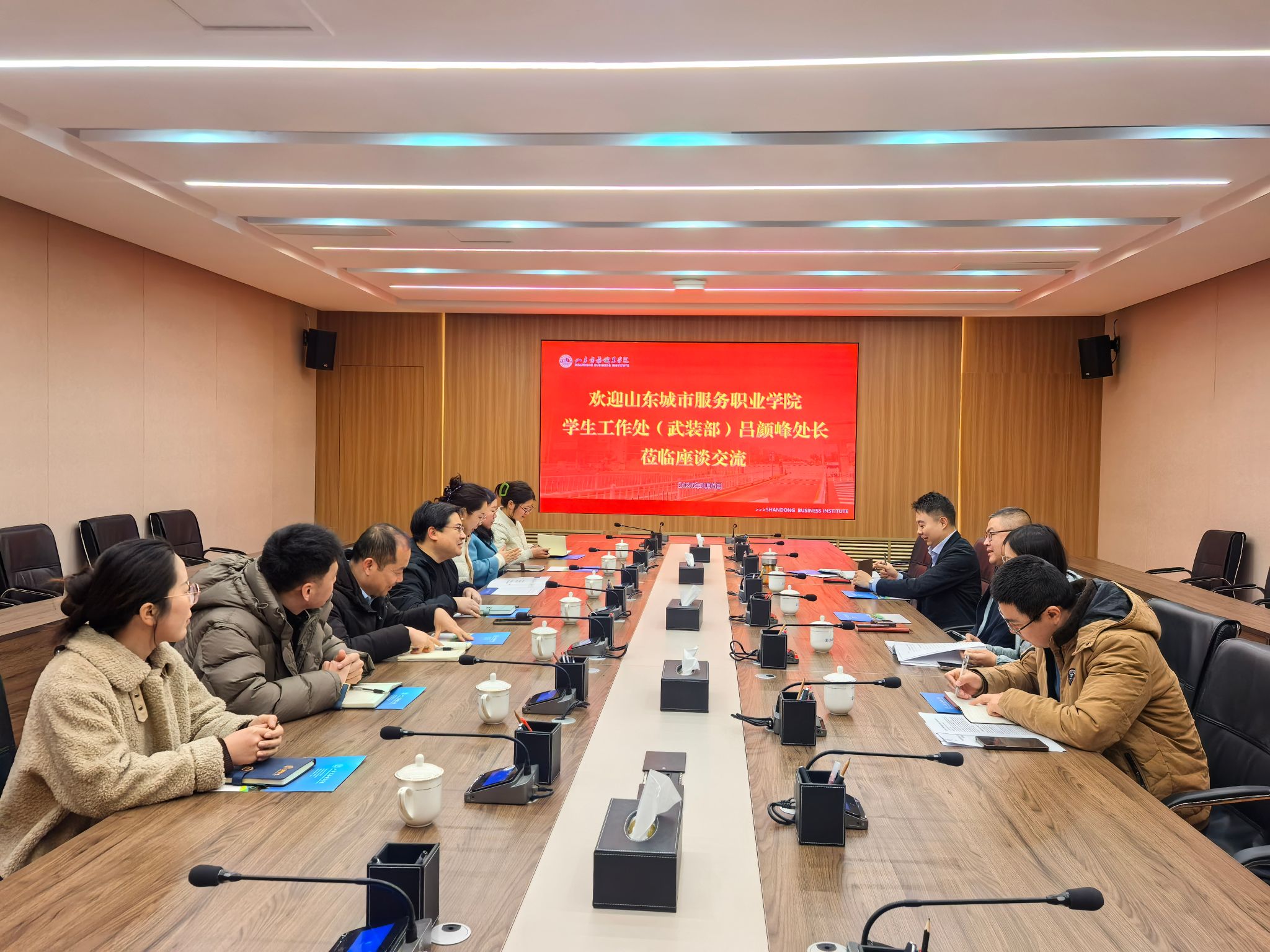 本站讯 为深入落实立德树人根本任务,搭建校际学生工作交流平台、互学互鉴共促发展,3月6日,山东城市服务职业学院学生工作处(武装部)处长吕颜峰一行来我校,围绕学风建设、三全育人、共青团工作开展专题学习交流。我校学生工作处(团委)相关人员、部分二级学院分管学生工作副院长、学生科长参加此次交流活动。